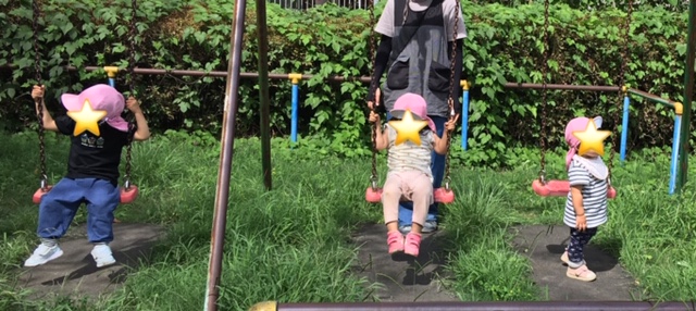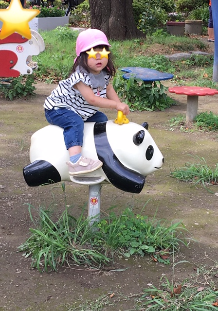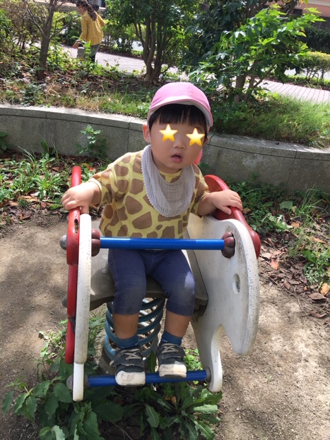 お友達が乗っているスプリング遊具を揺らしてあげていました。