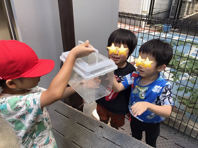 カメムシは何を食べるんだろう?お部屋戻ったら調べてみよう!と興味を広げていました。