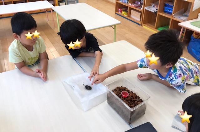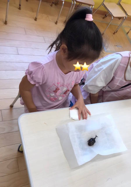 毎日「げんきかな?」「ゼリーたべてる!」と観察やお世話をしていた子どもたち。 「ありがとう」「げんきでね」とかぶくんに声をかけていました。