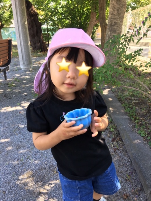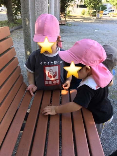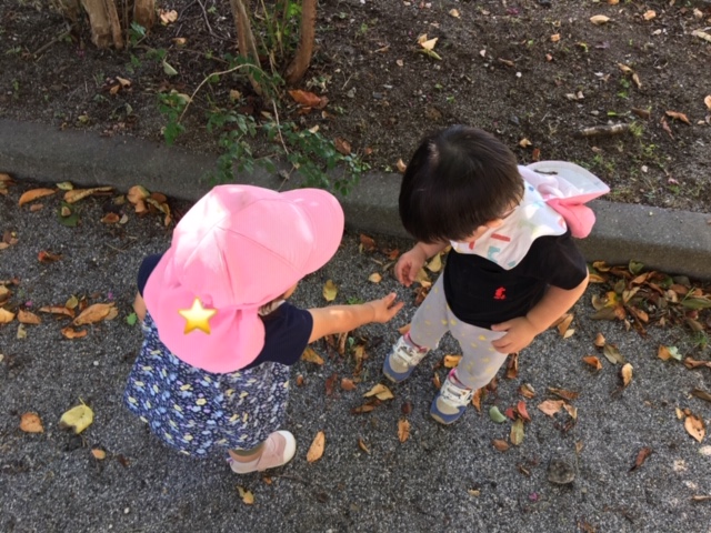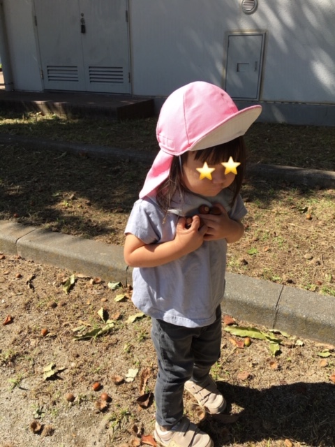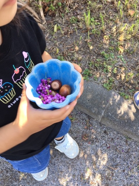 見つけたどんぐりや木の実を転がして遊んでいるお友達もいました。