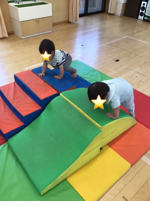 ホールでは巧技台にどんどん上手に登っていました。