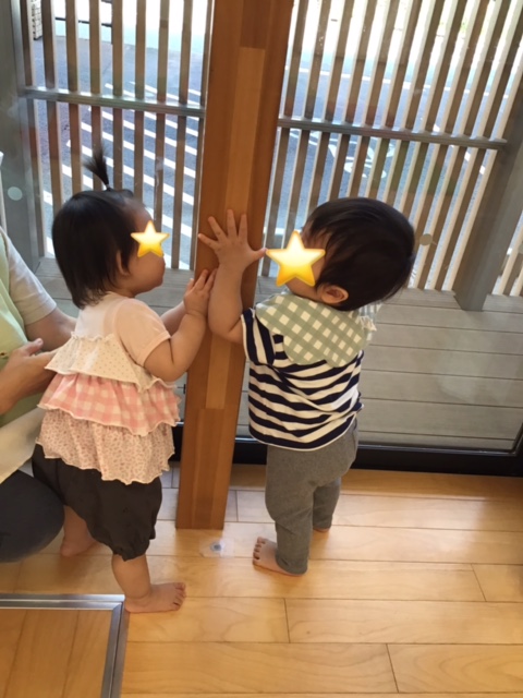 「いないいないばぁ」と柱から顔を覗かせて遊んでいます。
