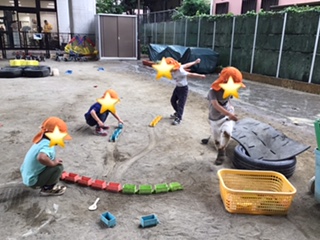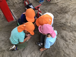砂の中からキラキラの石探しが始まり、色々なところから「あった!!」という声が聞こえてきました。