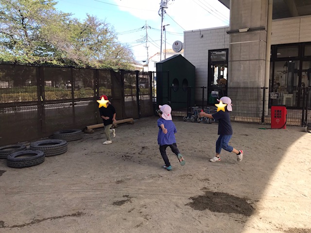 友達と鬼ごっこ、たくさん走ってとても気持ちよさそうでした。