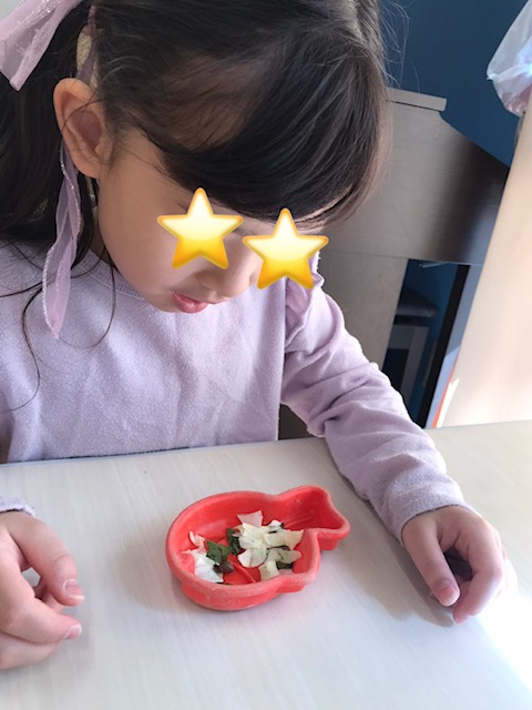 ペチュニアにカタツムリがくっついているのを発見。子どもの提案で、ダンゴムシにあげているお野菜をお裾分けしました。殻の中から顔をだして、食べる様子を観察することができました。