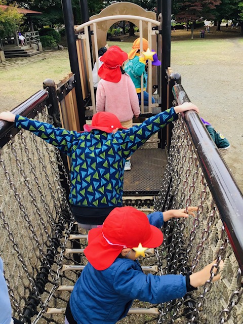 固定遊具では滑り台や吊り橋などで楽しく遊びました。「だいじょうぶ?」「とおれる?」と声を掛け合いながら仲良く遊ぶ姿がありました。