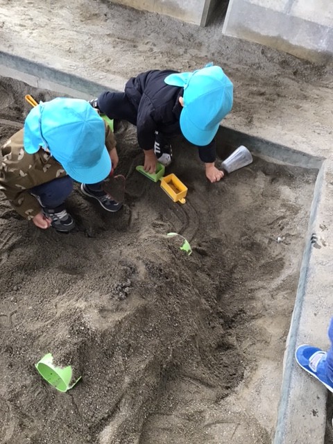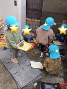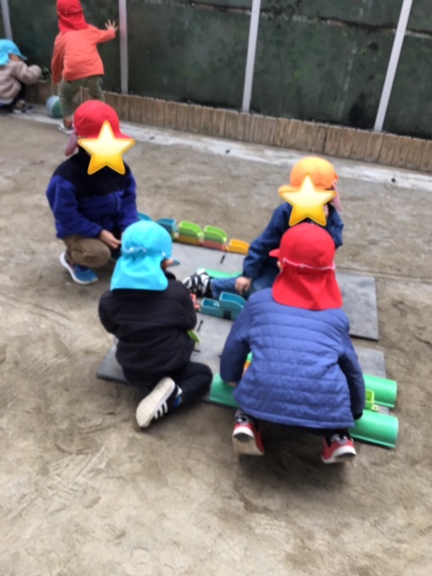 「お仕事行ってくるね」 「ただいま〜」 園庭の隅っこをお家にして、お料理したりお出掛けして遊んでいました。