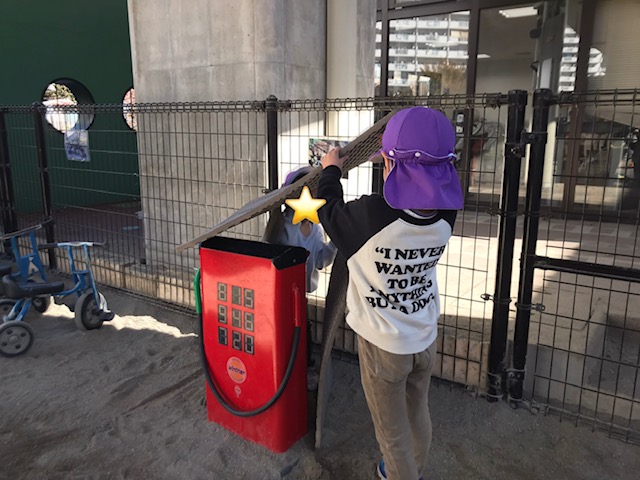 心地の良い気温で園庭遊びも楽しむ姿がありました。 「このあいだのつづきしよう!」と言いながら 先週のおうちごっこの続きをしていました。
