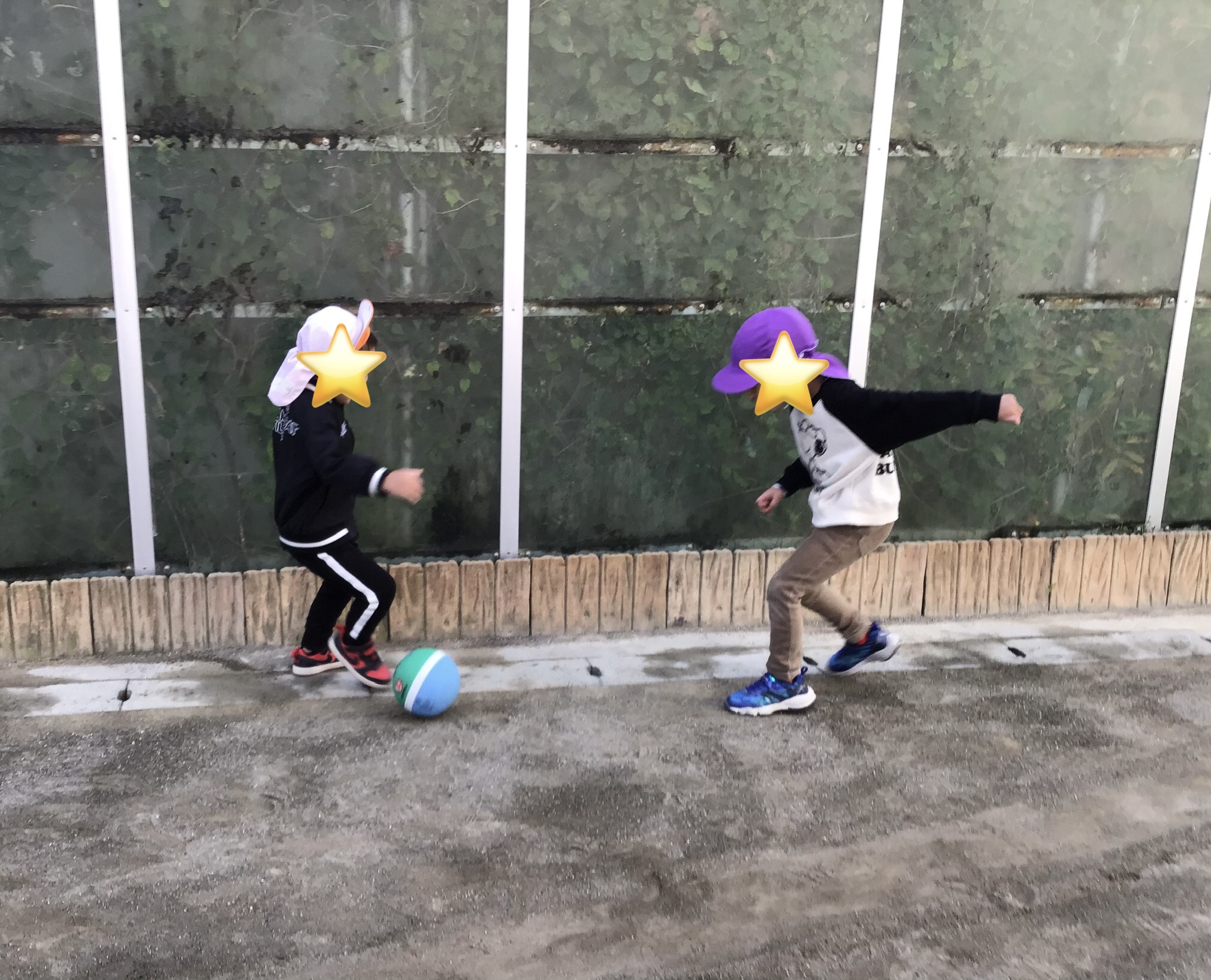 サッカーをして、ボールが転がっていってもケラケラと笑いながら追いかけて楽しんでいました。