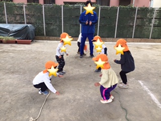 体育指導の縄跳びでは、左右にジャンプにも慣れてきて、今日は前後にジャンプ!!何回もチャレンジしていました。