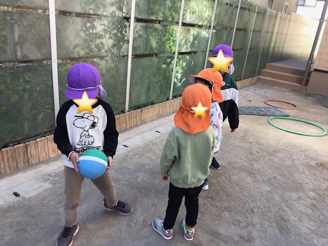 園庭ではサッカーをしていると、ほし組のお友達が「いれて!」と仲間に入り、一緒に遊ぶ姿がありました。