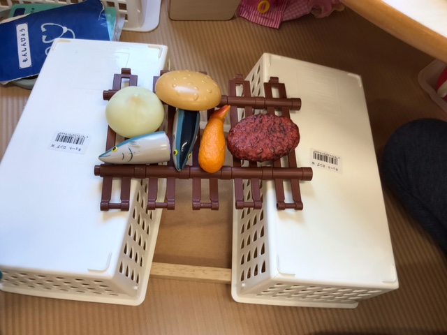 室内ではキャンプとバーベキューごっこをして遊んでいました。