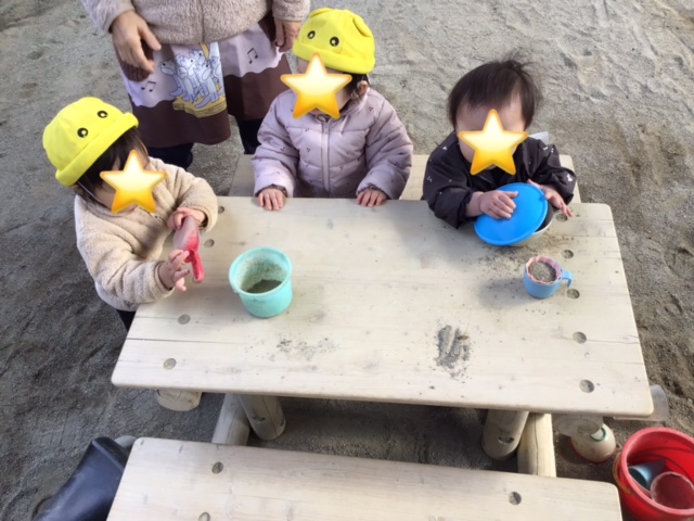 色々な型に砂を上手に入れようと頑張っていました!