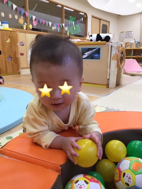 ボールを掴めて嬉しそうです。