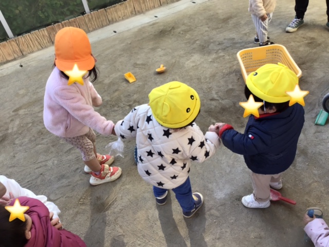 みんなで仲良く手を繋いで歩いていました。
