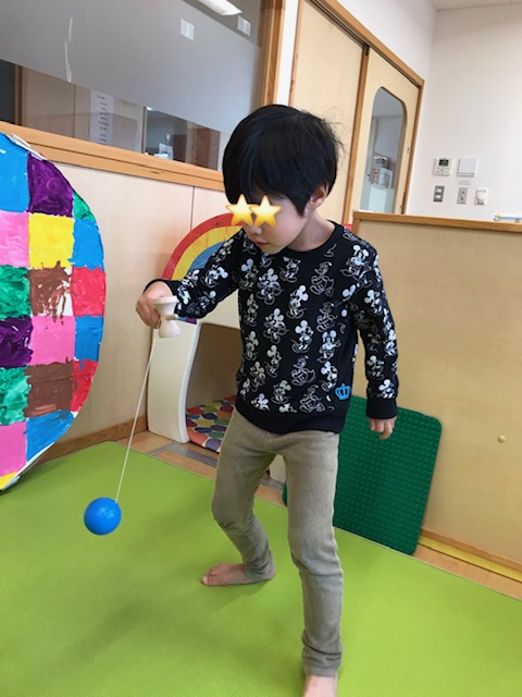 何度も挑戦し、コマを回すことに成功しました。回すコツをお友達に教えるなどお友達とも遊んでいました。