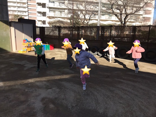 体育指導が始まると嬉しそうに体を動かし、 寒い日でしたが、元気いっぱいの様子でした。