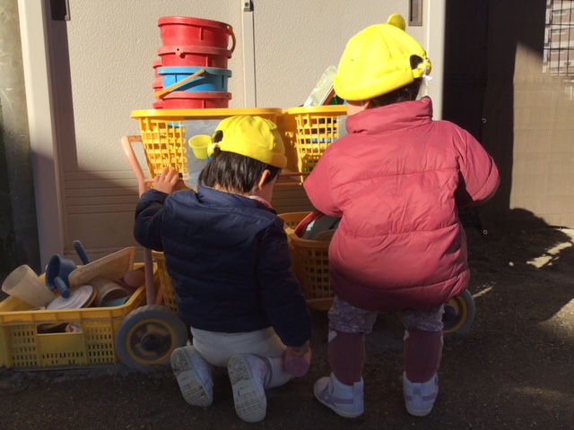 園庭に出ると何で遊ぼうかな?と自分でおもちゃを選んでいます。