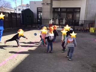 中当てでは、ねらいを定めて投げることができらようになってきました。