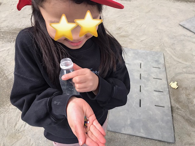久しぶりに宝石探しに夢中になっていました。探しやすい方法を見つけたようで、ふるいを使って宝石探しを楽しんでいました。