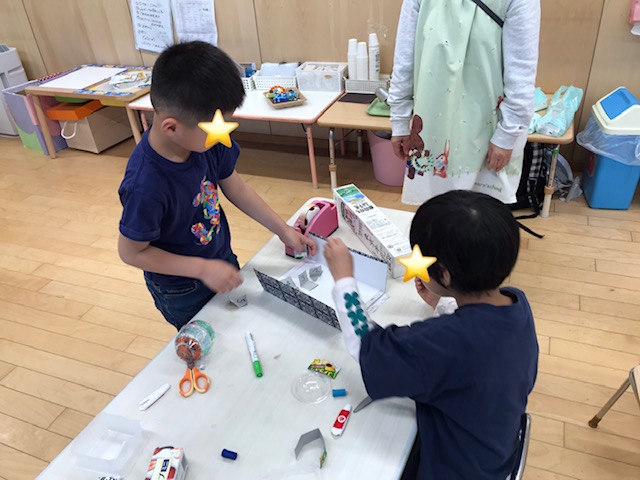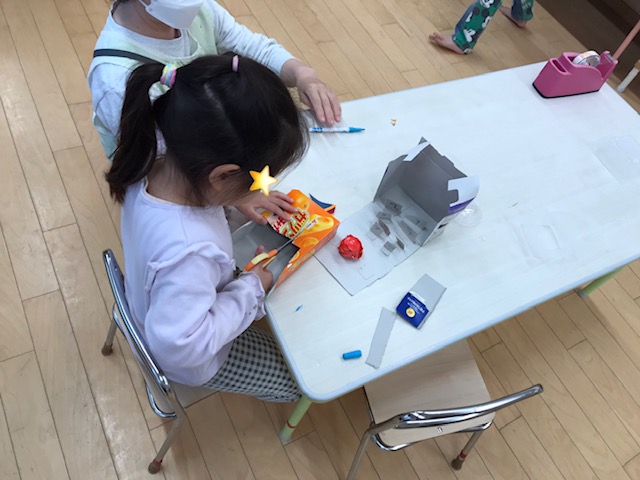 作り方は同じですが、使う箱や大きさなど、違うところも廃材遊びの面白さだなと感じました。