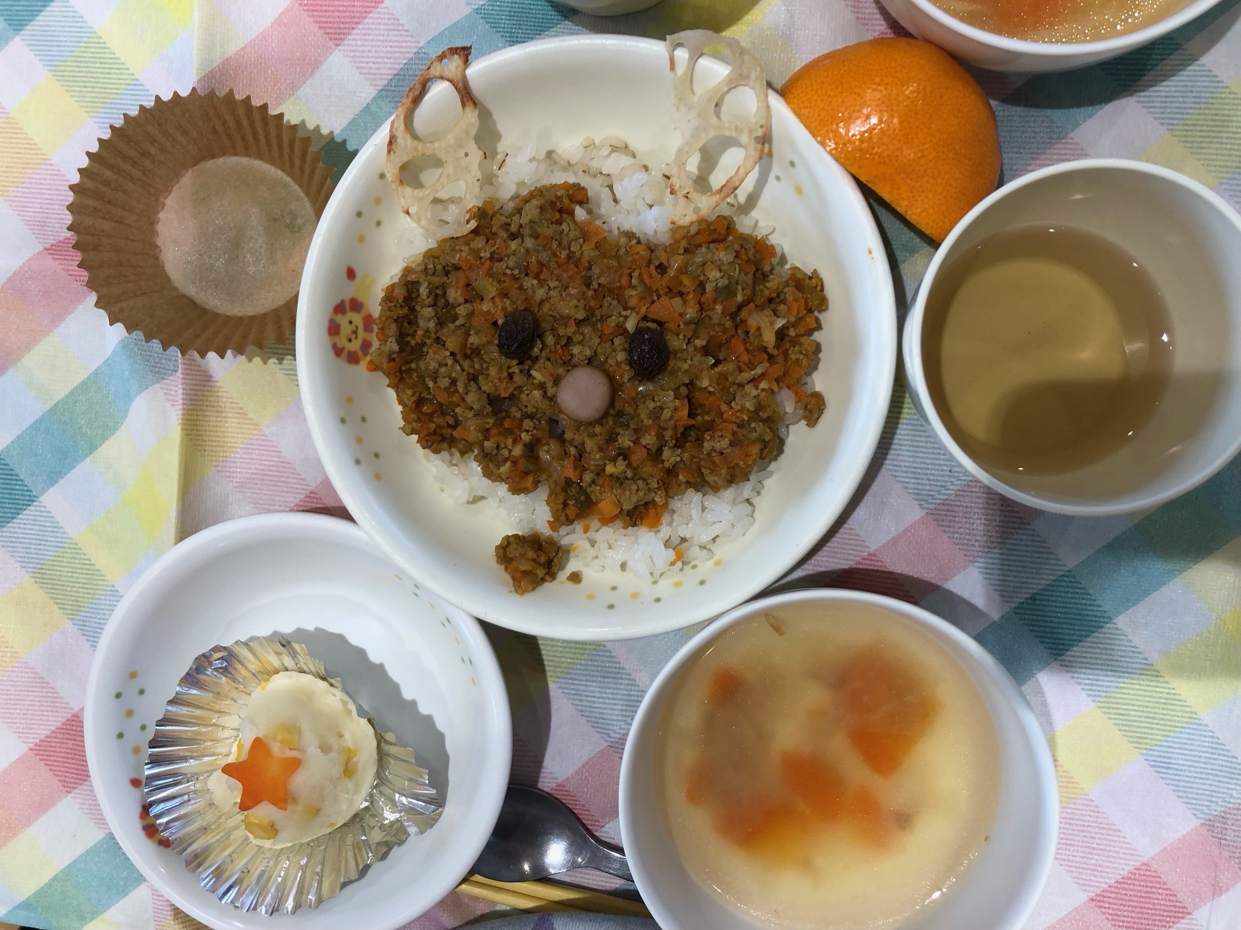 自分たちでレンコンやソーセージをトッピングしてトナカイを作り美味しくいただきました。