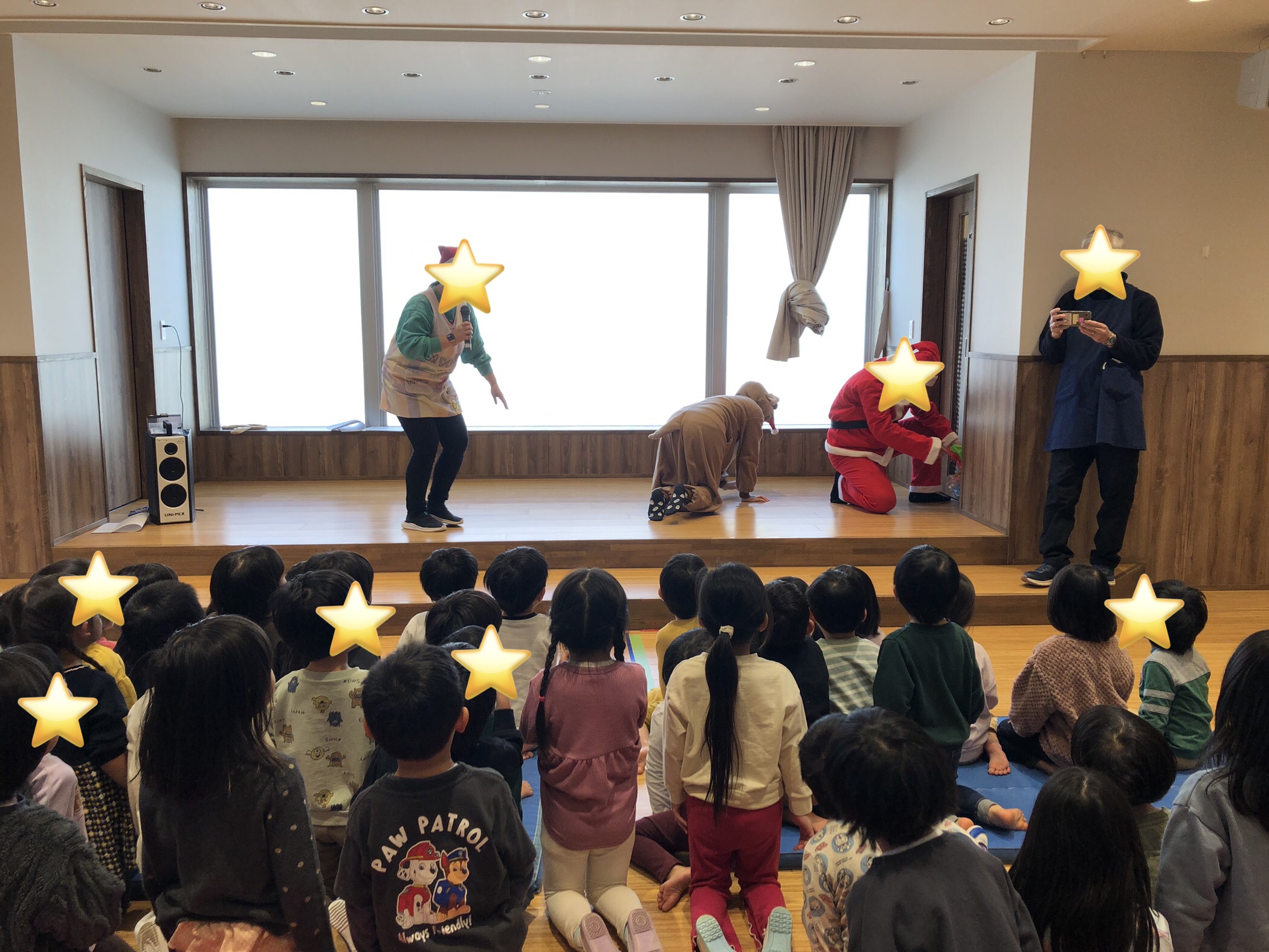 先生たちと一緒に劇に交えて子どもたちへプレゼントをもってきてくれましたよ。