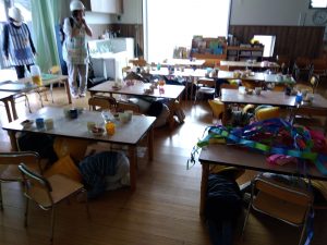 避難訓練の放送をよく聞いて保育室で安全な所はどこかをよく考えて避難訓練に参加されていました。乳児クラスの子どもたちも防災頭巾を嫌がることなく、スムーズに避難をしておりました。