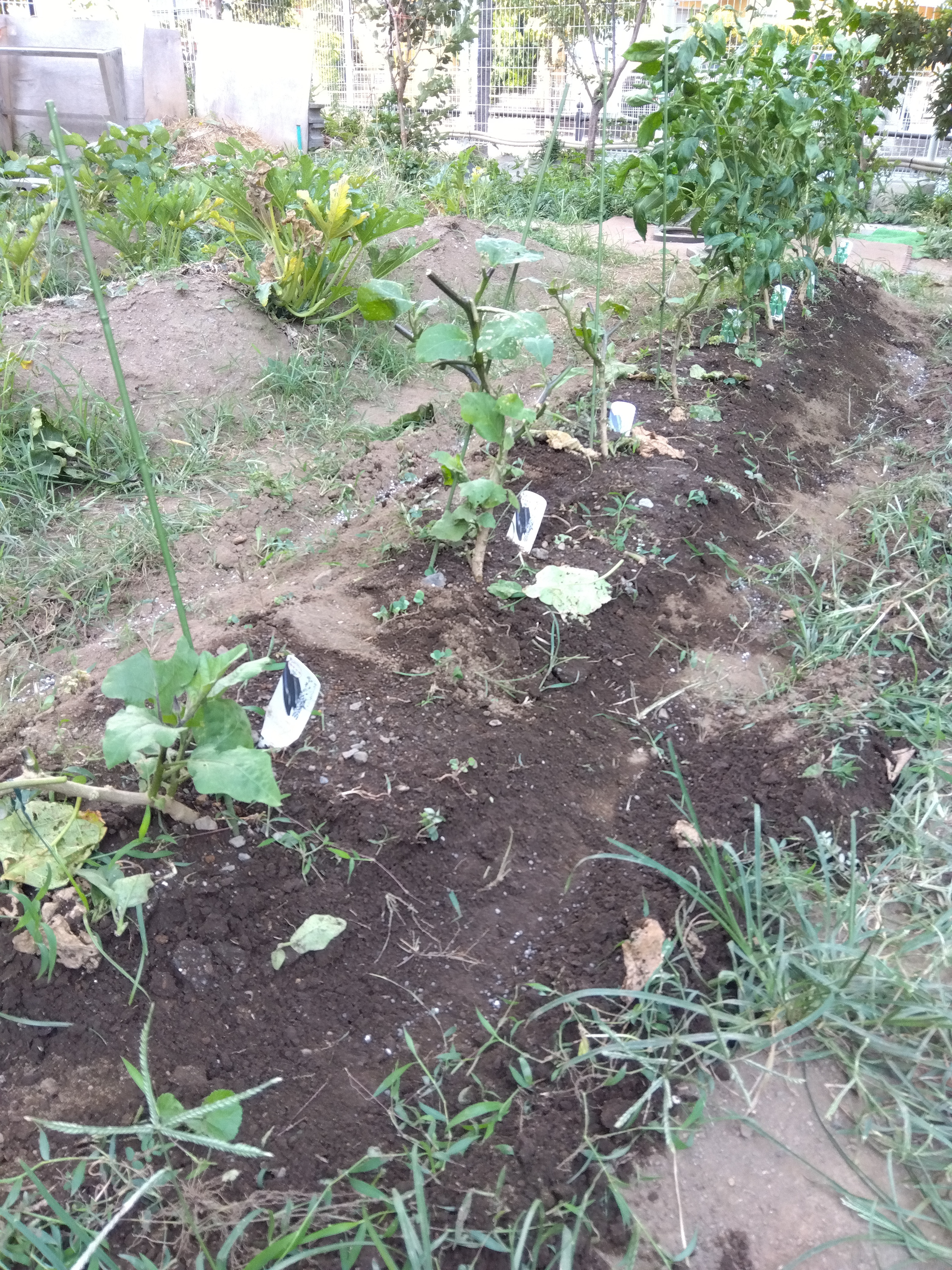 ➀夏のナスとピーマンを収穫したあと、枝を選定して秋ナスと秋ピーマンを育てることにしました。