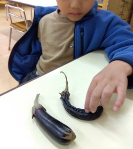 先生:ナスに、みんながあげた水が入っていたのかな。<探求活動>