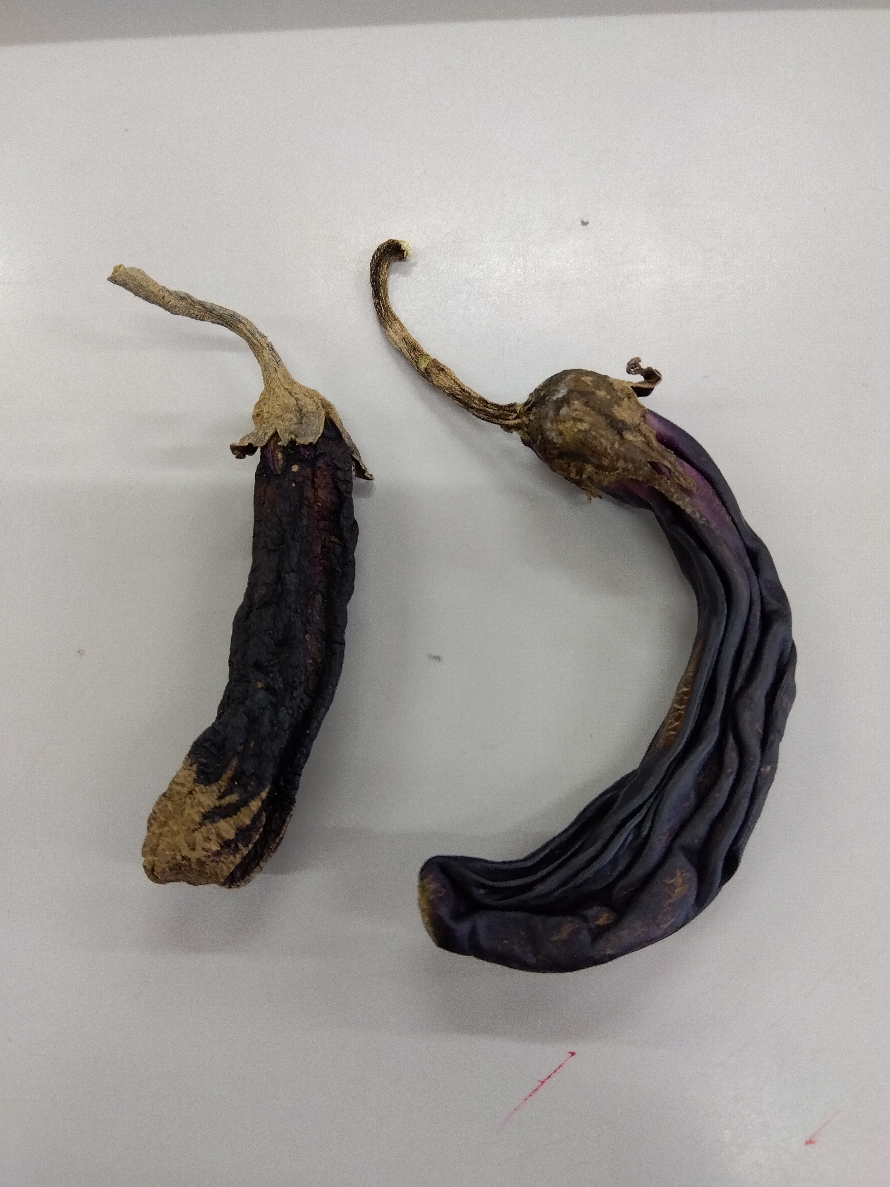 ③りっぱな秋ナスと秋ピーマンを収穫することができました。
