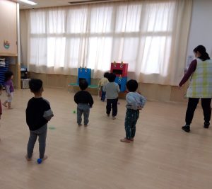 夢中になって豆まきと言う名の玉入れを楽しんでいた、たんぽぽ組さんでした!