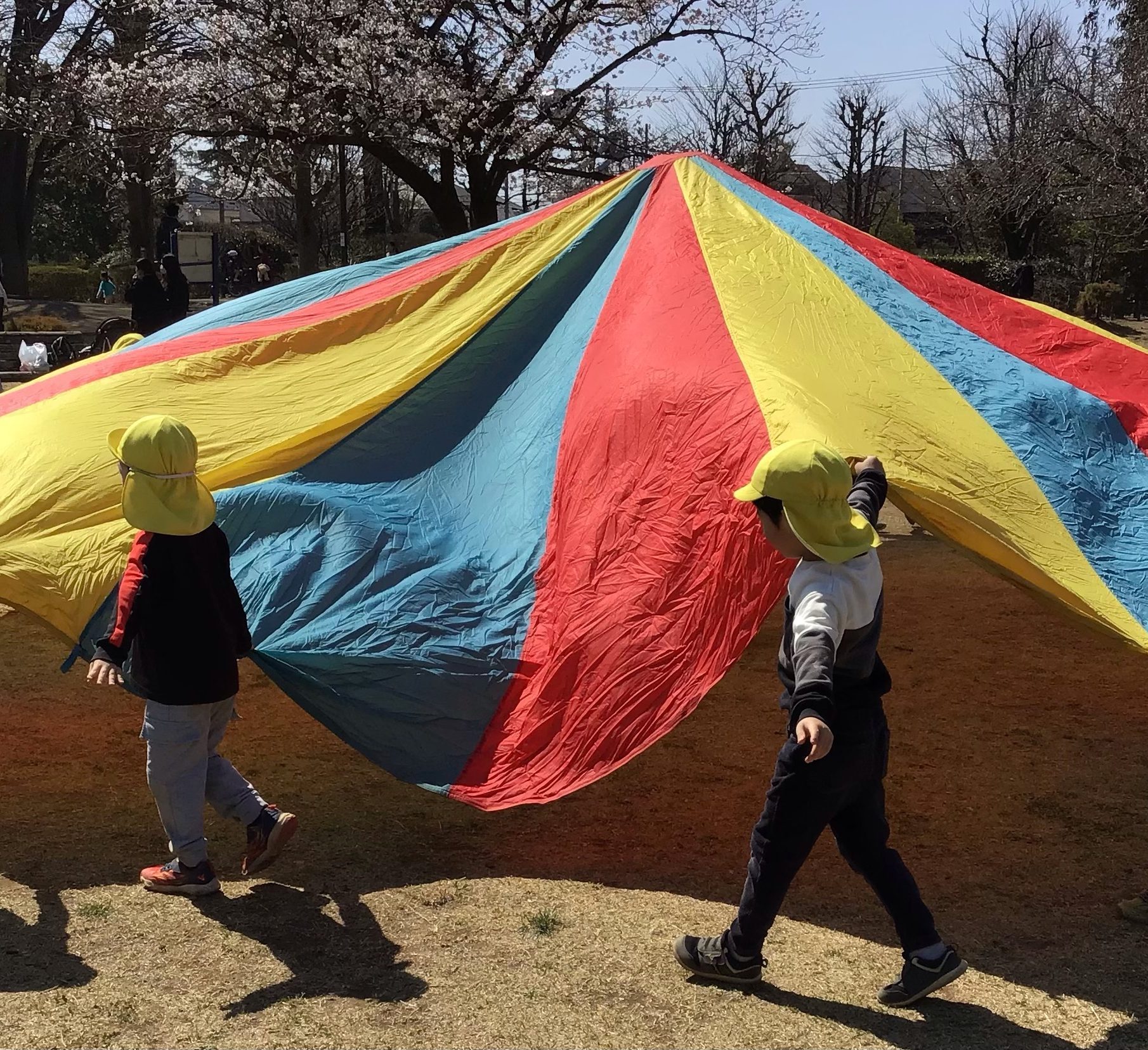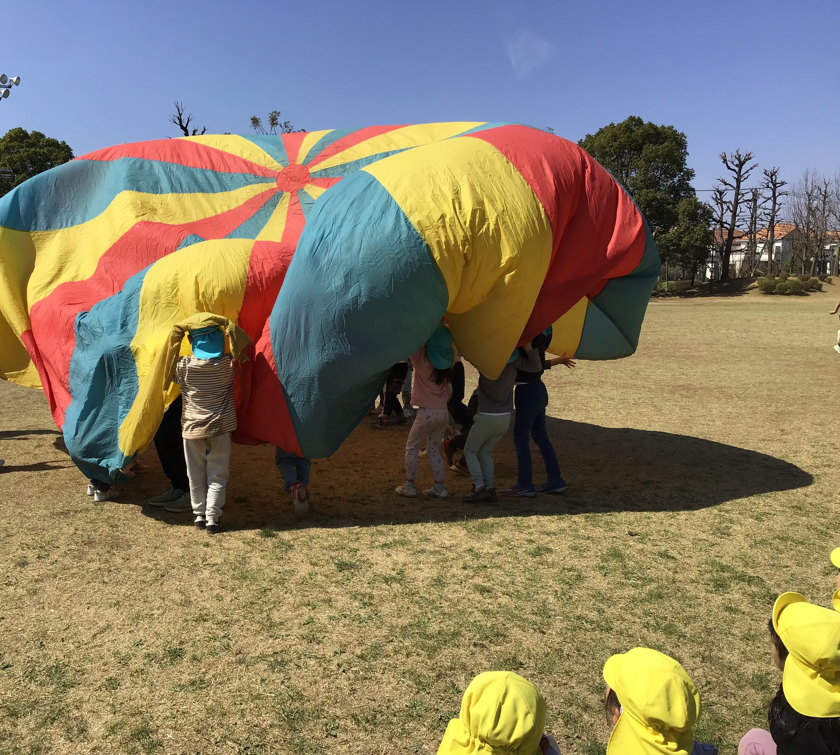 その後は、原っぱのところでクラスごとにパラバルーンをして楽しみました。