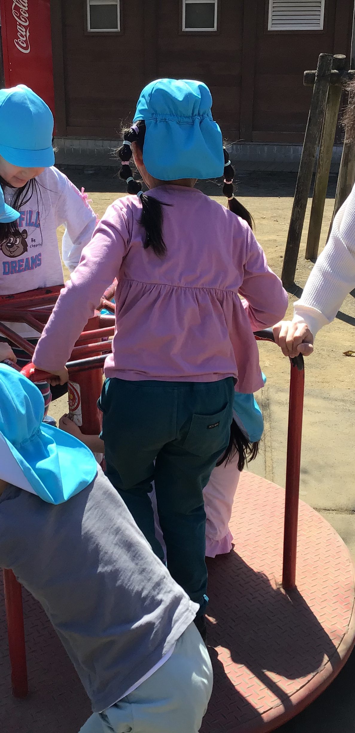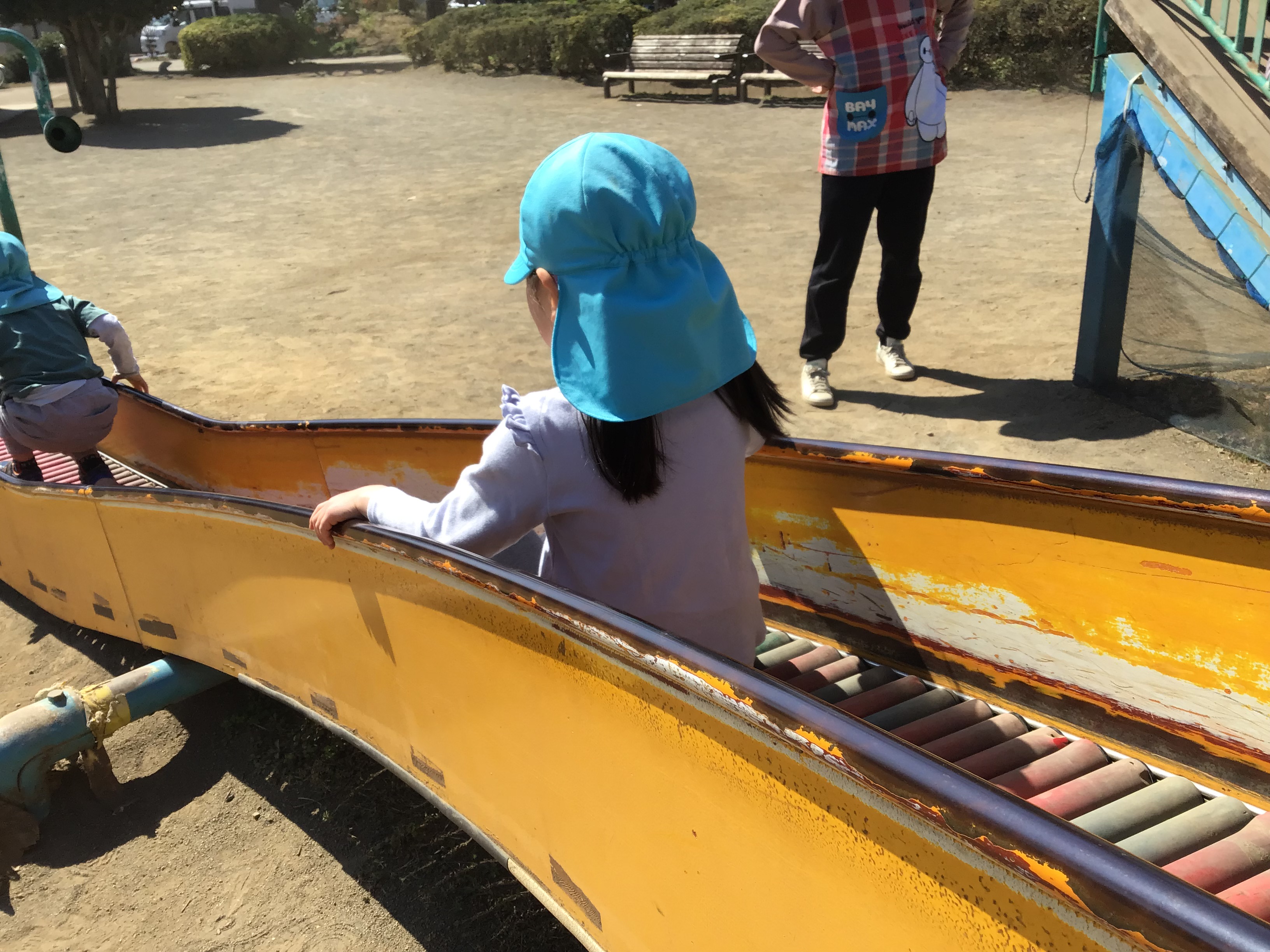 友達を誘いながら滑り台やグルグル回る遊具を楽しんだりと笑いながら友達との関わりを楽しむ姿がとても印象的でした。