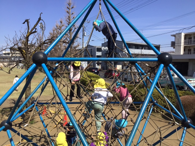 公園では、遊具で元気いっぱいに遊び、高い所から「先生見て!」と呼ぶ姿がありました。
