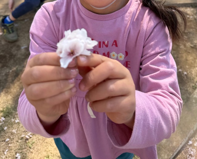落ちている桜を集めて「花束作った」と見せてくれて春の季節を感じるひとときとなりました。