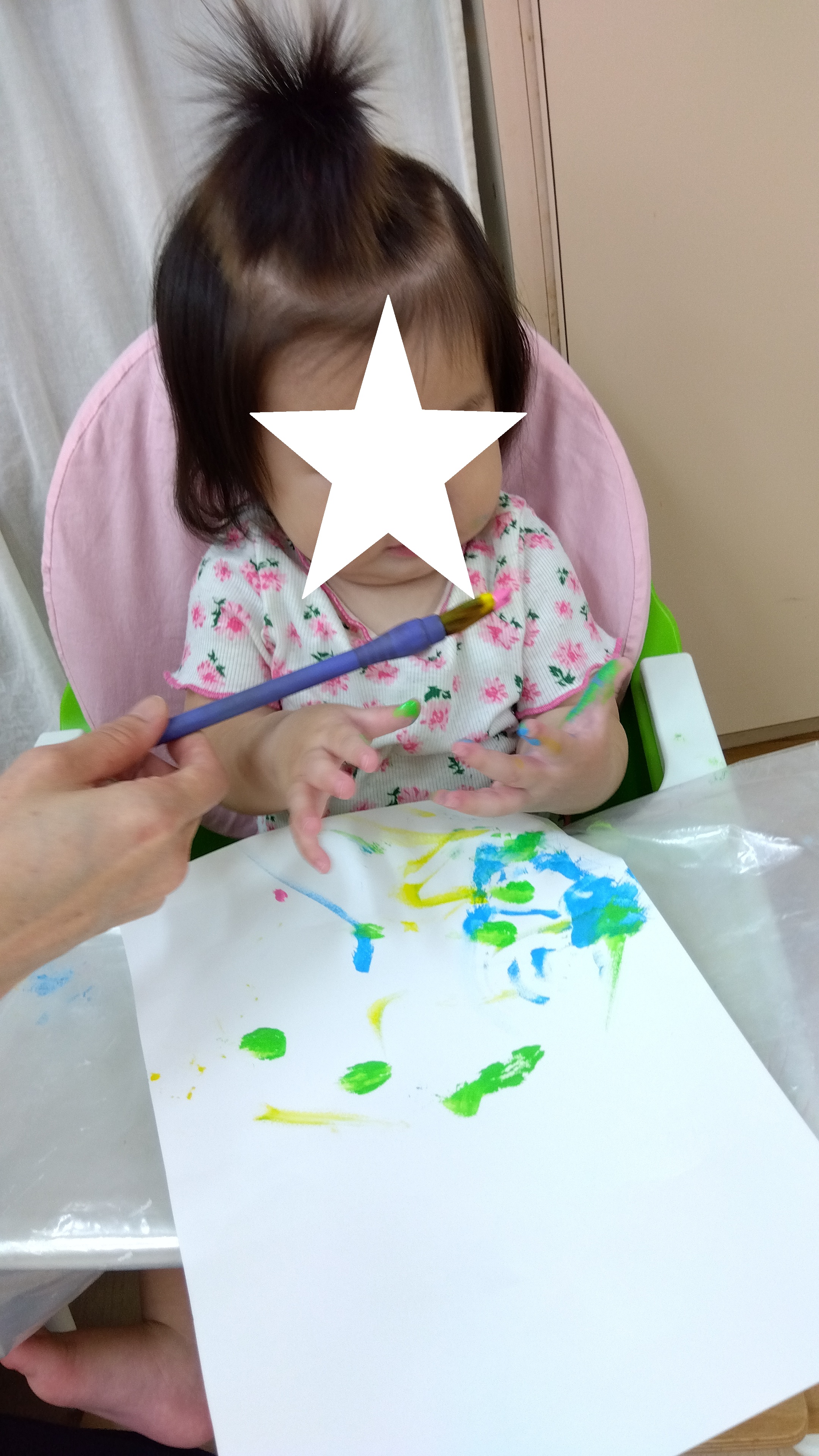 月齢に合わせて筆や手を使い、画用紙いっぱいに思い思いに色付けを楽しみました~♪