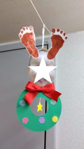 低月齢児のお友だちは足型のツノで可愛いトナカイに変身!