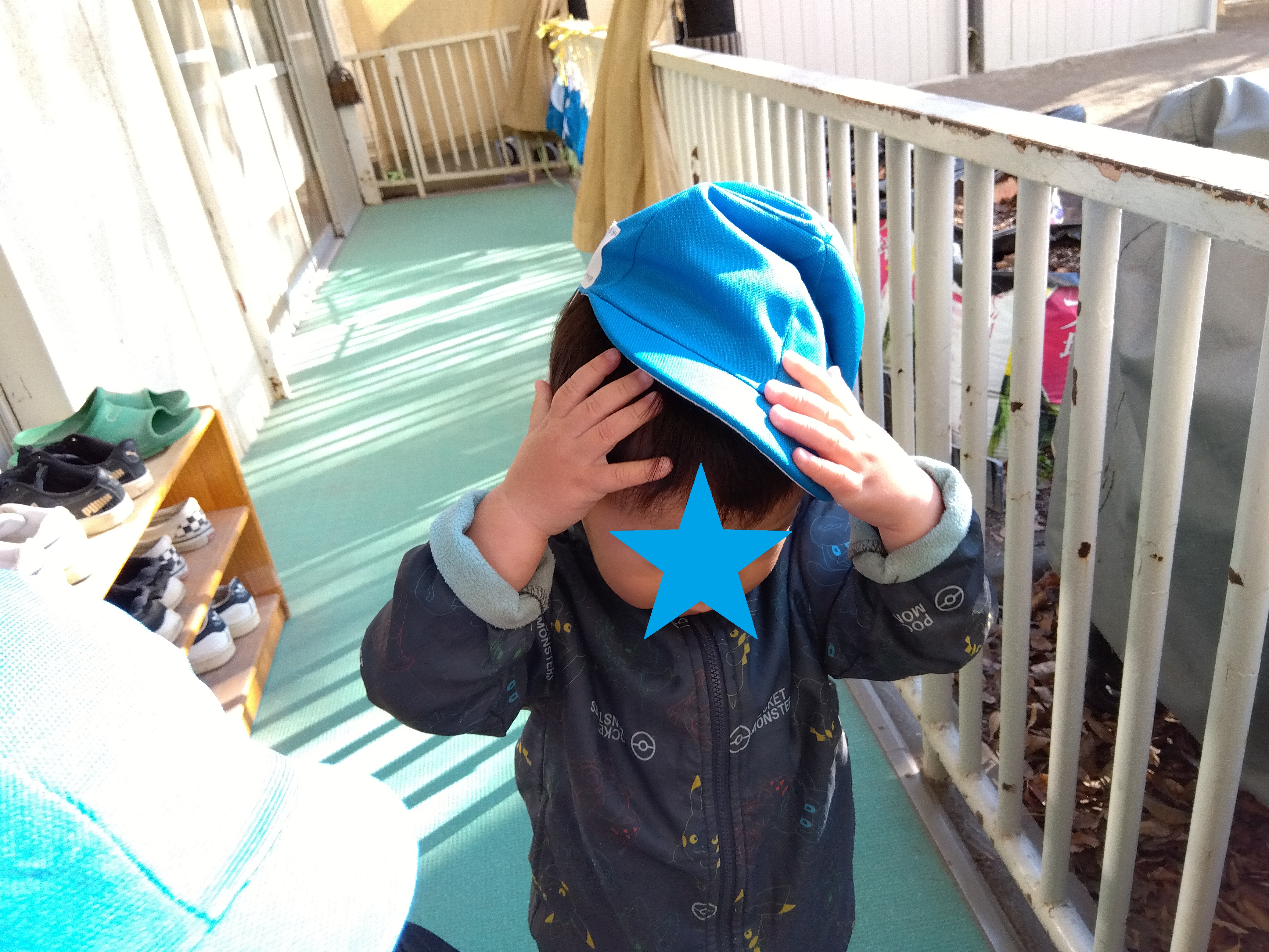 上着のチャックをあげようとしたり、帽子だって自分でかぶれちゃいます。