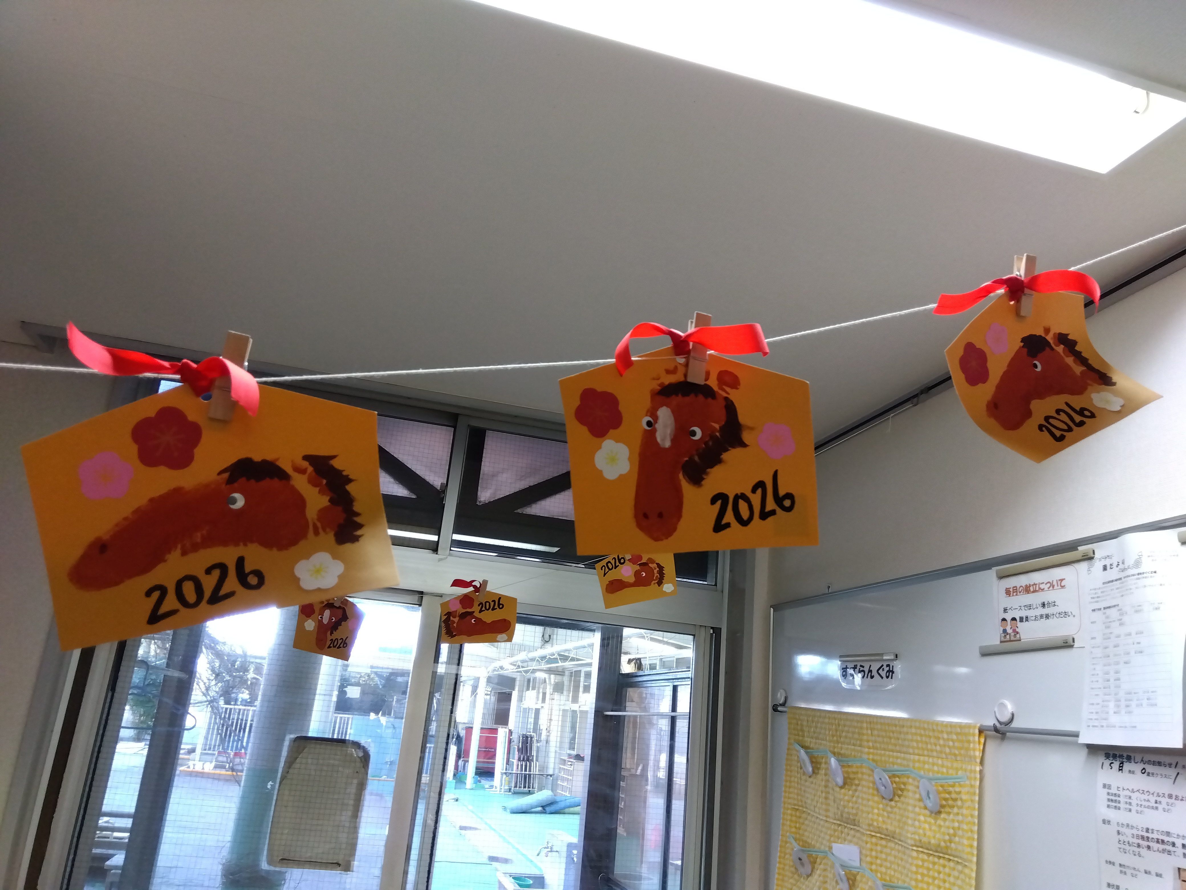 今年は『馬年』という事で足型で馬の絵馬を作りました。