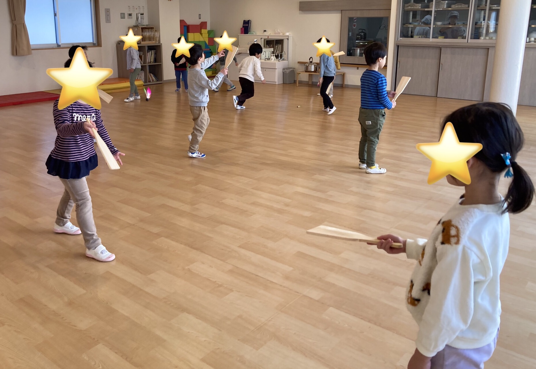 ホールでやった羽子板の羽をつく音が心地良く音も楽しんでいた子ども達でした。