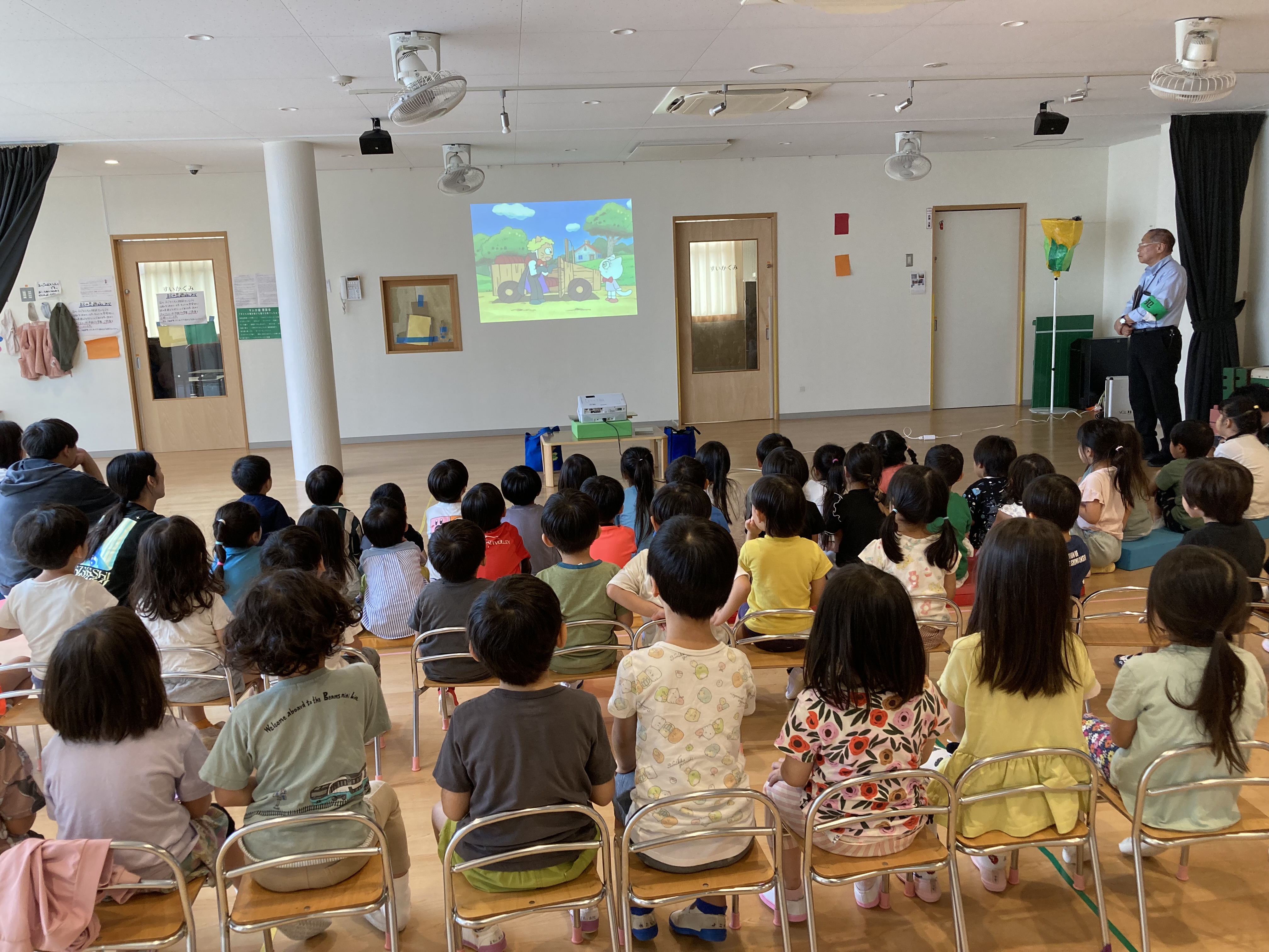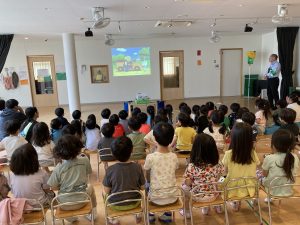 その後幼児クラスがホールにて防犯教室を行いました。