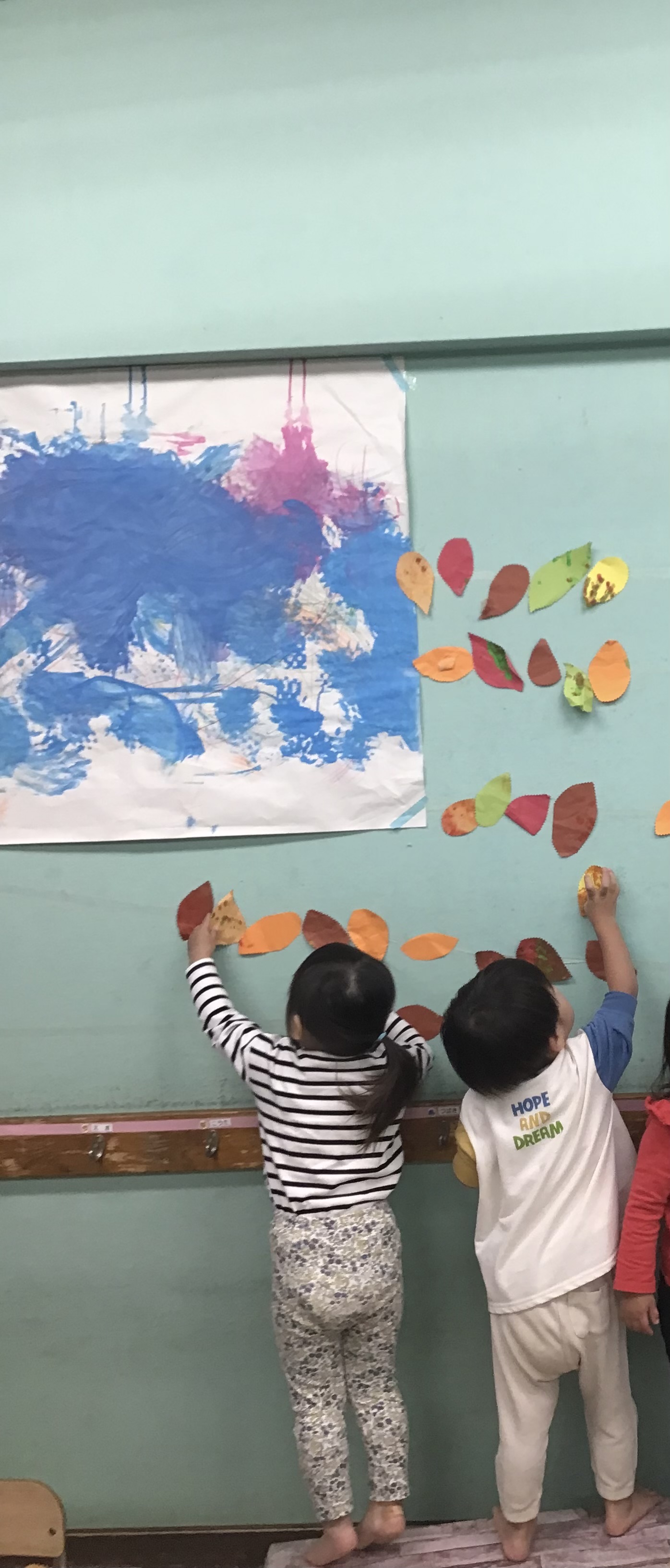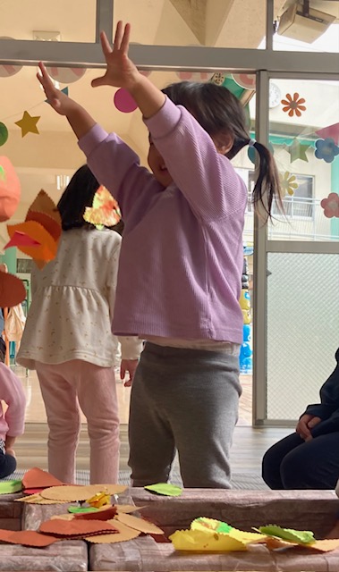 前日のふれあいデーでは、おうちの人達とも落ち葉の雨を降らせたりも!