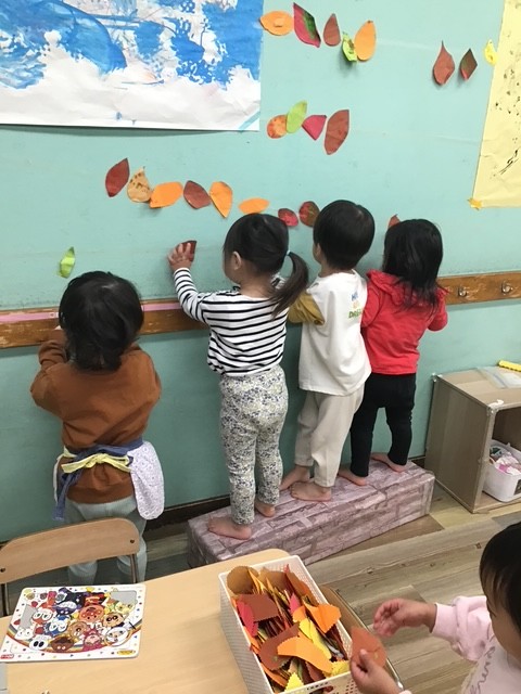 みんなが色付けしてくれたものを葉っぱの形に保育者がカットして、