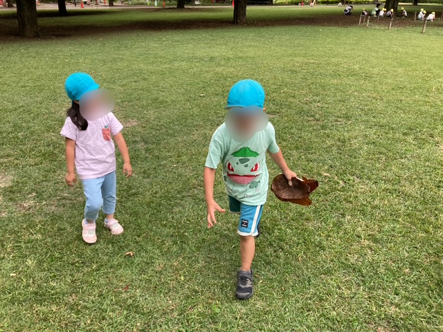 公園までの道のりで葉っぱや花を見つけると、「あった!」「おはな」と見つけたことを伝えていました。