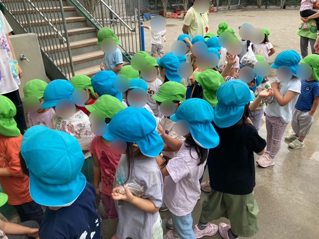最後は保育士が思いっきりシャワーの水を飛ばしました!