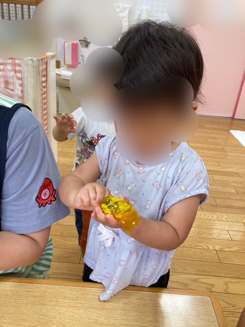 そんな中、月2組さんは一足早くおばけさんを作ってお菓子をゲットする遊びに取り組みました。