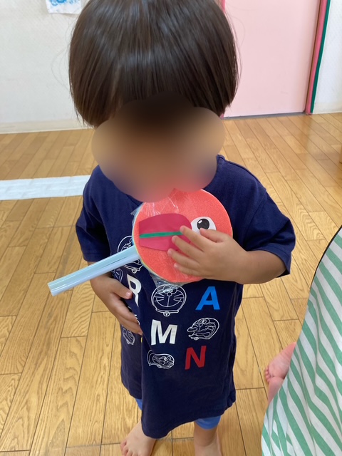 その後は、自分で作った海(UMI)ロゴを貼り付けて、園庭遊びに行く子までいました。余程楽しかったようです!