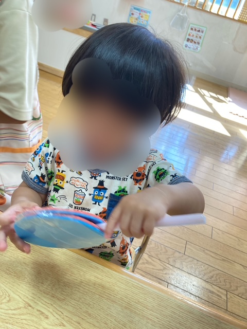 新聞紙を千切るのも、ギュっと握るのも上手になってきました。