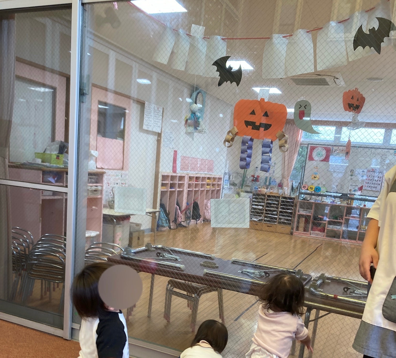 お化けやカボチャをみて”こわい!”を表現している子もいました。